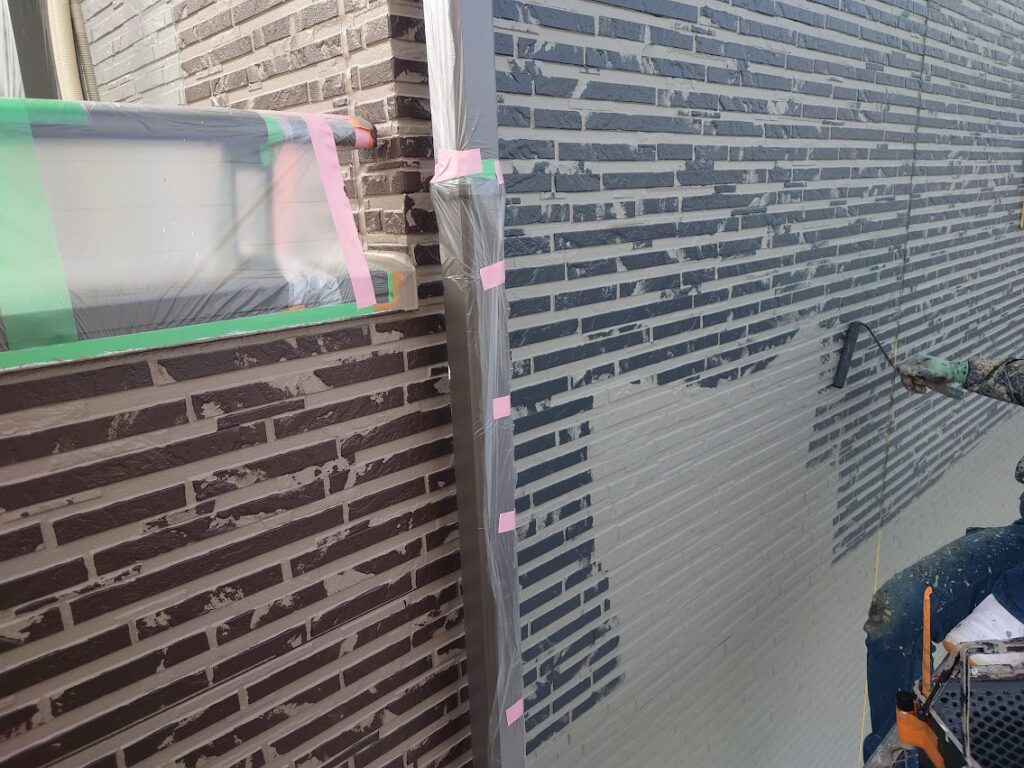 ダブルトーン塗装は、凹凸のあるサイディングやタイル調の外壁において、目地(凹部)と表面(凸部)を異なる2色で塗り分ける高意匠工法塗装です!